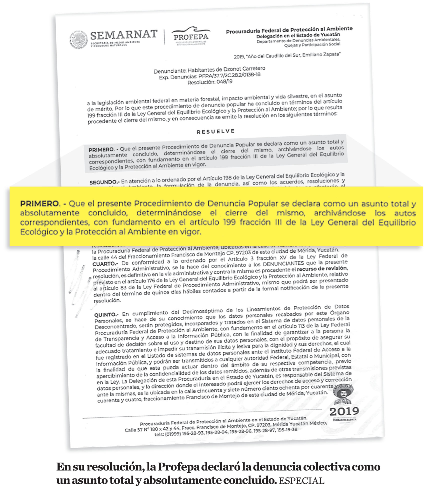 Por ello, siete de los apicultores afectados presentaron una denuncia colectiva ante la Procuraduría Federal de Protección al Ambiente (Profepa) en septiembre de 2008, la cual quedó asentada en el expediente: PFPA/ 37.7/2C.28.2/0138-18; sin embargo, en mayo de este año la dependencia resolvió dar carpetazo al asunto.