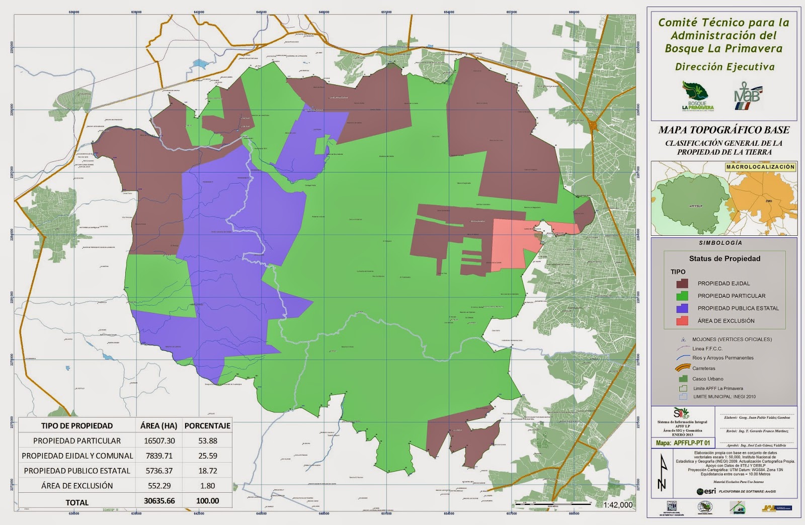 “Dentro del polígono, 57.4 por ciento de la superficie es propiedad privada, 23.8 por ciento es propiedad ejidal y 18.7 por ciento es propiedad estatal, de estas últimas, 5,290 hectáreas se adquirieron en 1984 por donación presidencial, y 700 ha fueron adquiridas en 2001, por un convenio expropiatorio y el apoyo de la LV legislatura”.