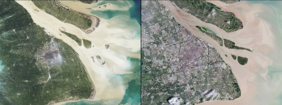 La urbanización es otro factor que ha afectado a la Tierra. La NASA mostró unas imágenes tomadas el 23 de abril de 1984 y el 20 de julio de 2016 en Shanghái, China en donde se muestra la sobrepoblación de este lugar.
