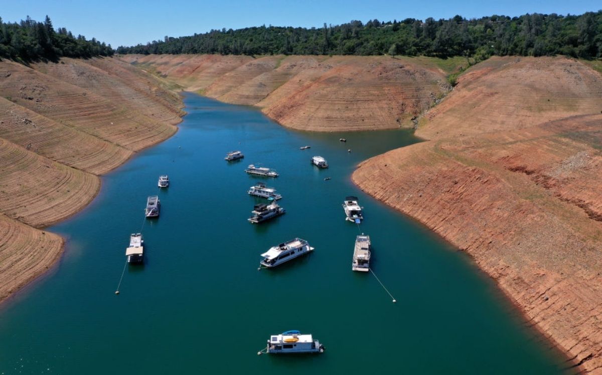 Las imágenes, capturadas con un dron, muestran la masiva presa ubicada del condado de Butte llena solo al 42 por ciento, por debajo de la mitad de su promedio histórico para estas fechas. La situación es casi tan mala a la vista durante la sequía de los años 2012 a 2016.