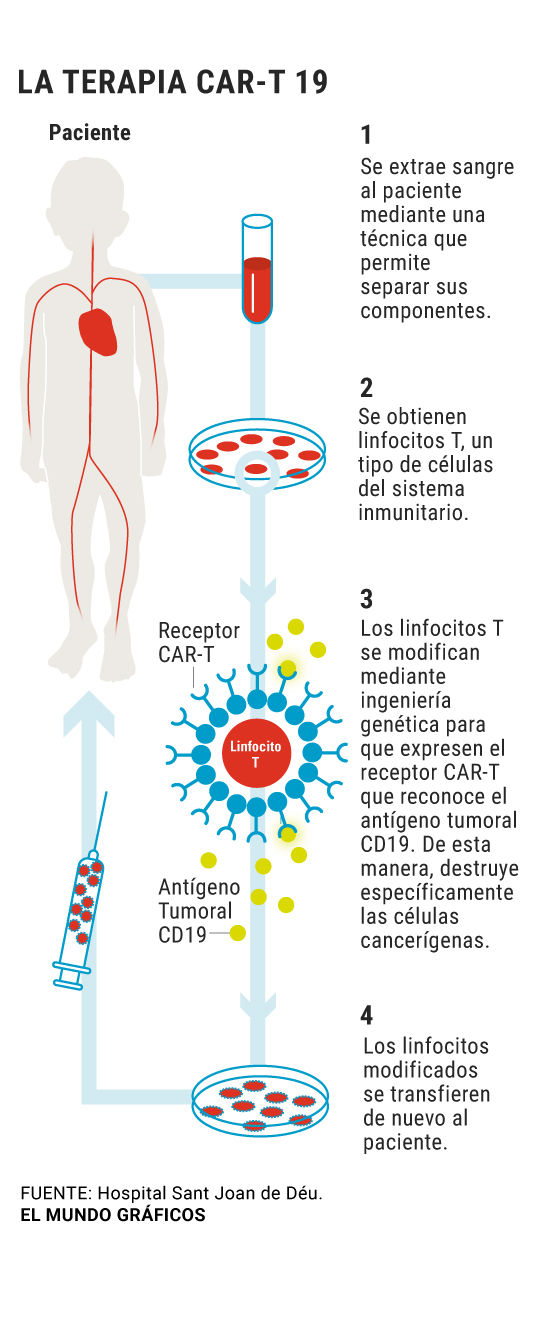 Este jueves, el hospital Sant Joan de Déu de Barcelona ha anunciado que, gracias a esta terapia, ha tratado con éxito al primer paciente pediátrico con leucemia bajo la cobertura de la seguridad social.