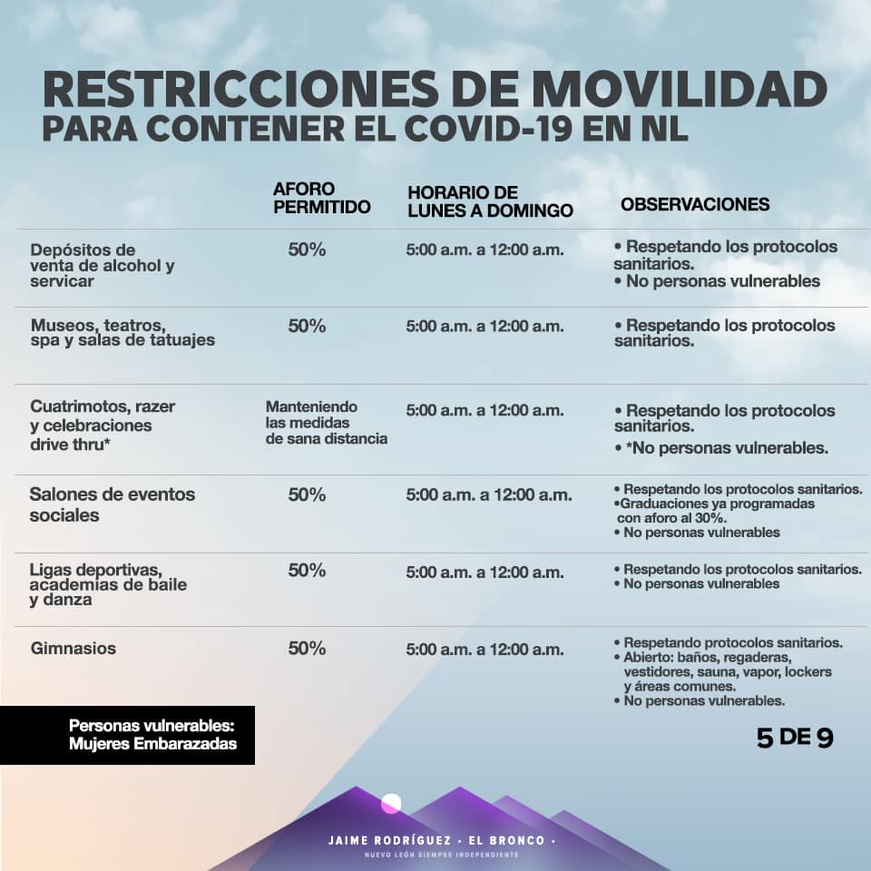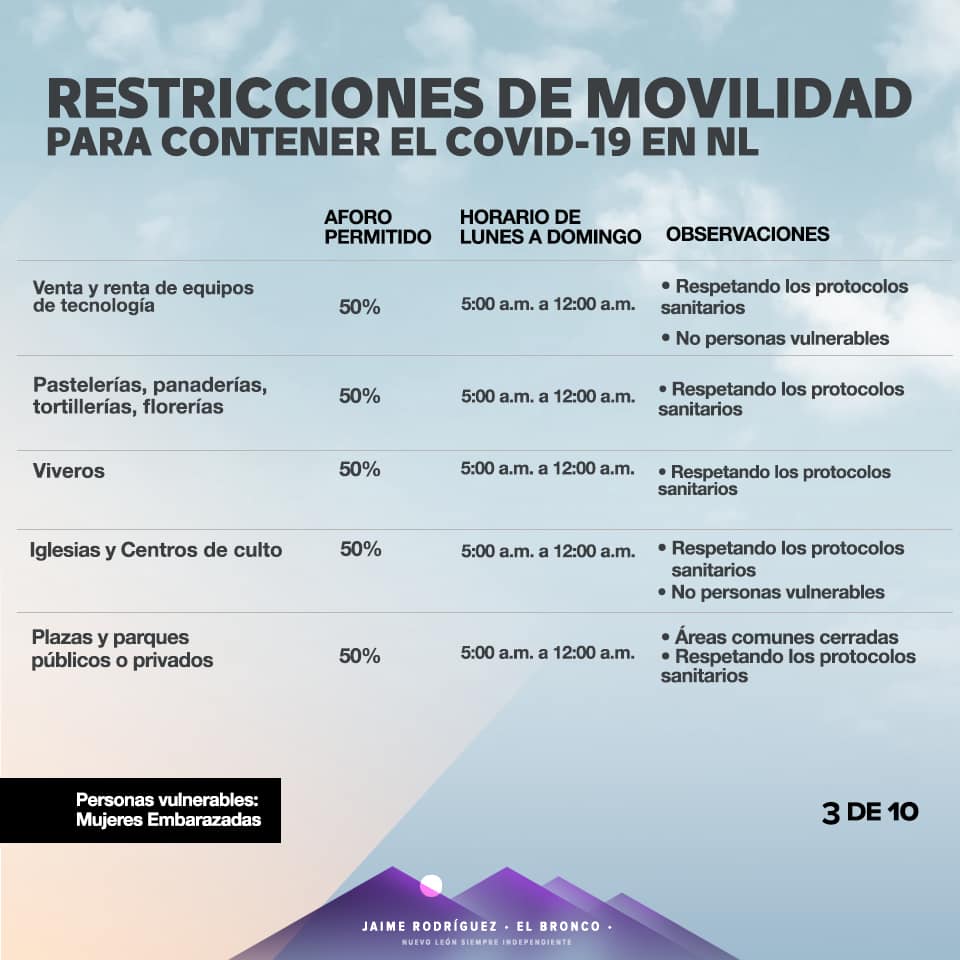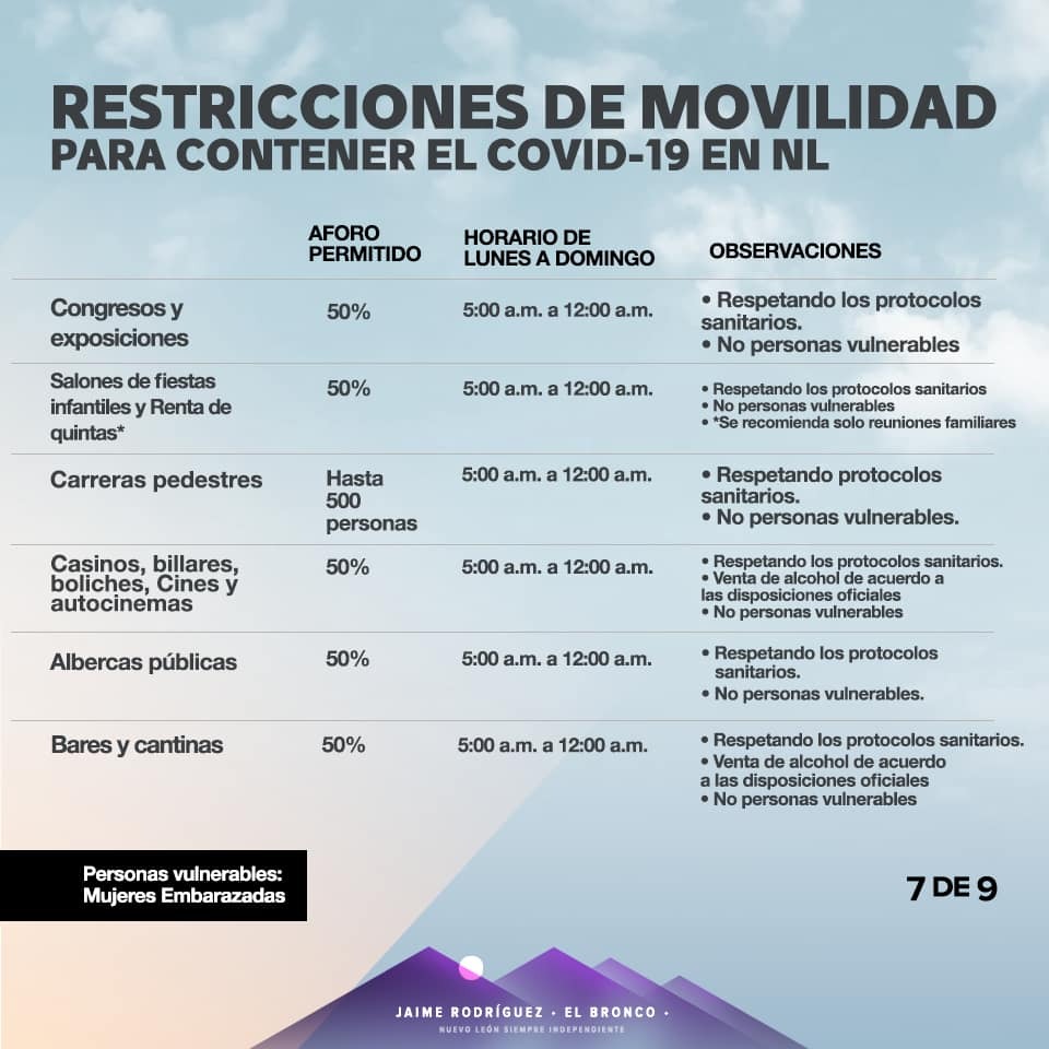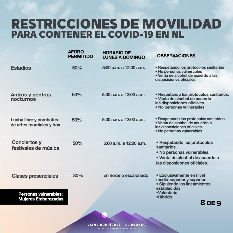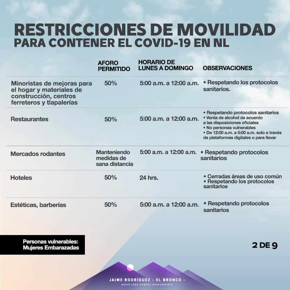 El gobierno de Nuevo León anunció este jueves que ante el incremento de casos de covid-19 decidieron tomar acciones como reducir horarios y el aforo en negocios y lugares públicos.