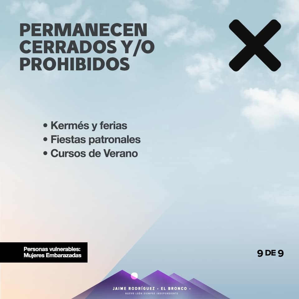 Esas mismas medidas están aplicadas para bares y cantinas, antros y centros nocturnos, conciertos y festivales de música, y estadios.
