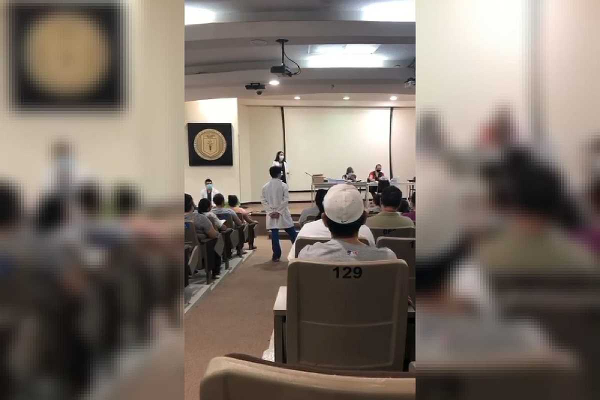 A las 6:52 en la entrada a la Facultad de Medicina se instaló un módulo especial para las personas con discapacidad y embarazadas, a ellos sí los dejaron entrar y tenían ya dentro en las carpas instaladas para la vacunación; sin embargo, debido a la aglomeración, terminó formándose una segunda fila sobre la calle Doctor Carlos Canseco.