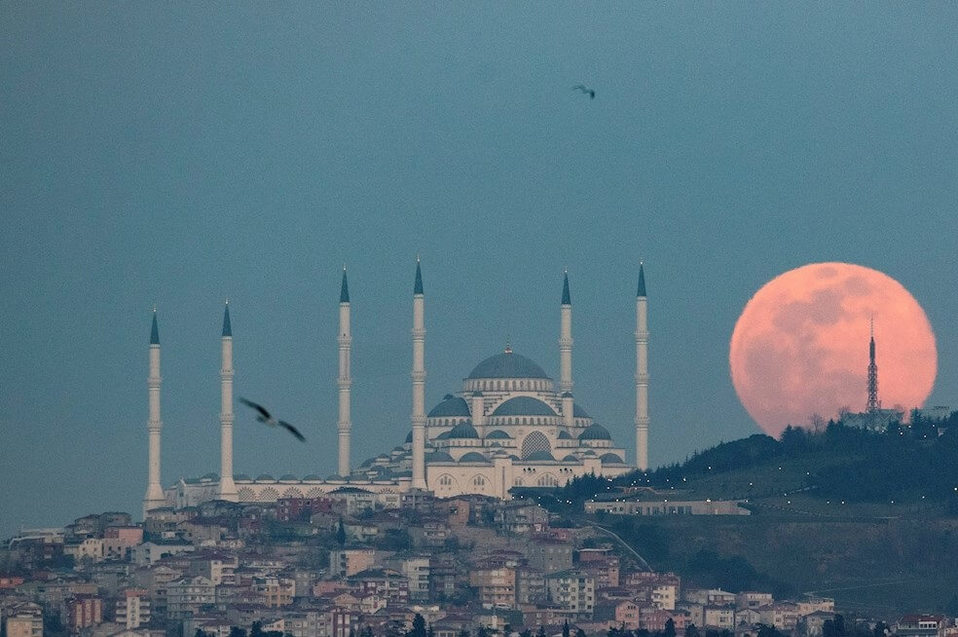 Vista de la superluna rosa 2020 en Turquía (AFP)