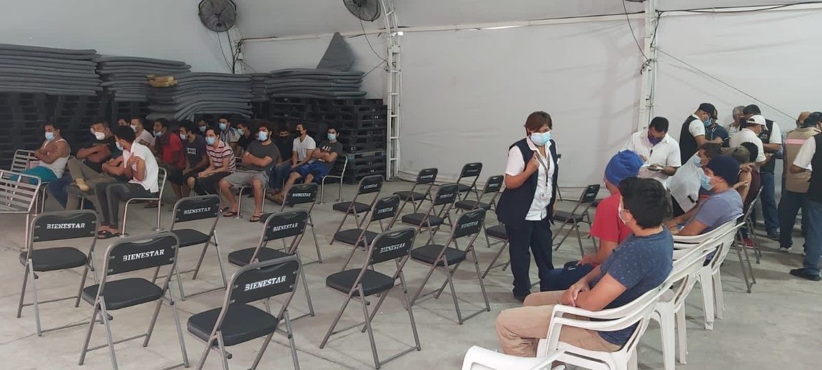 A través de su cuenta de Twitter, el INM dio el anuncio y publicó unas fotografías donde se ve a los migrantes haciendo fila para recibir la vacuna anticovid.