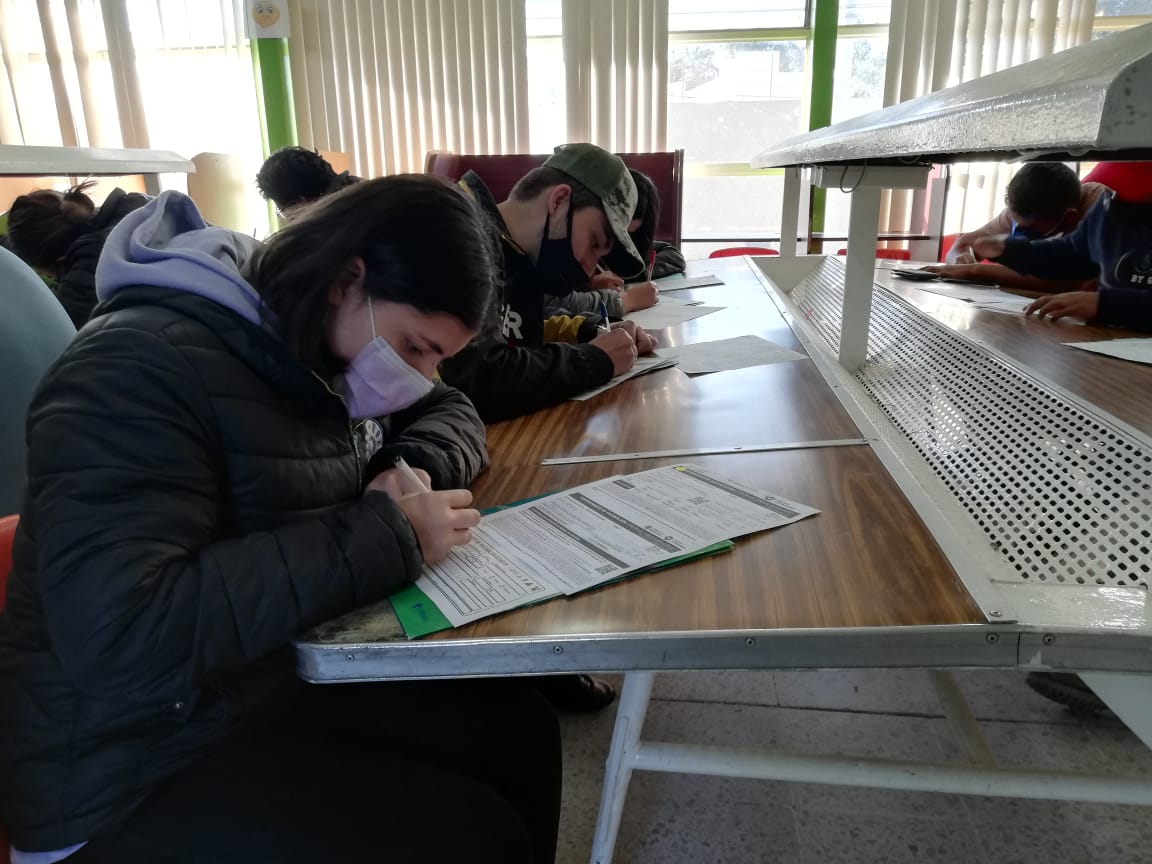 Tras ser vacunados los jóvenes son enviados al área de observación que se ha dispuesto en el auditorio de la secundaria para esperar a que no tengan ninguna reacción.