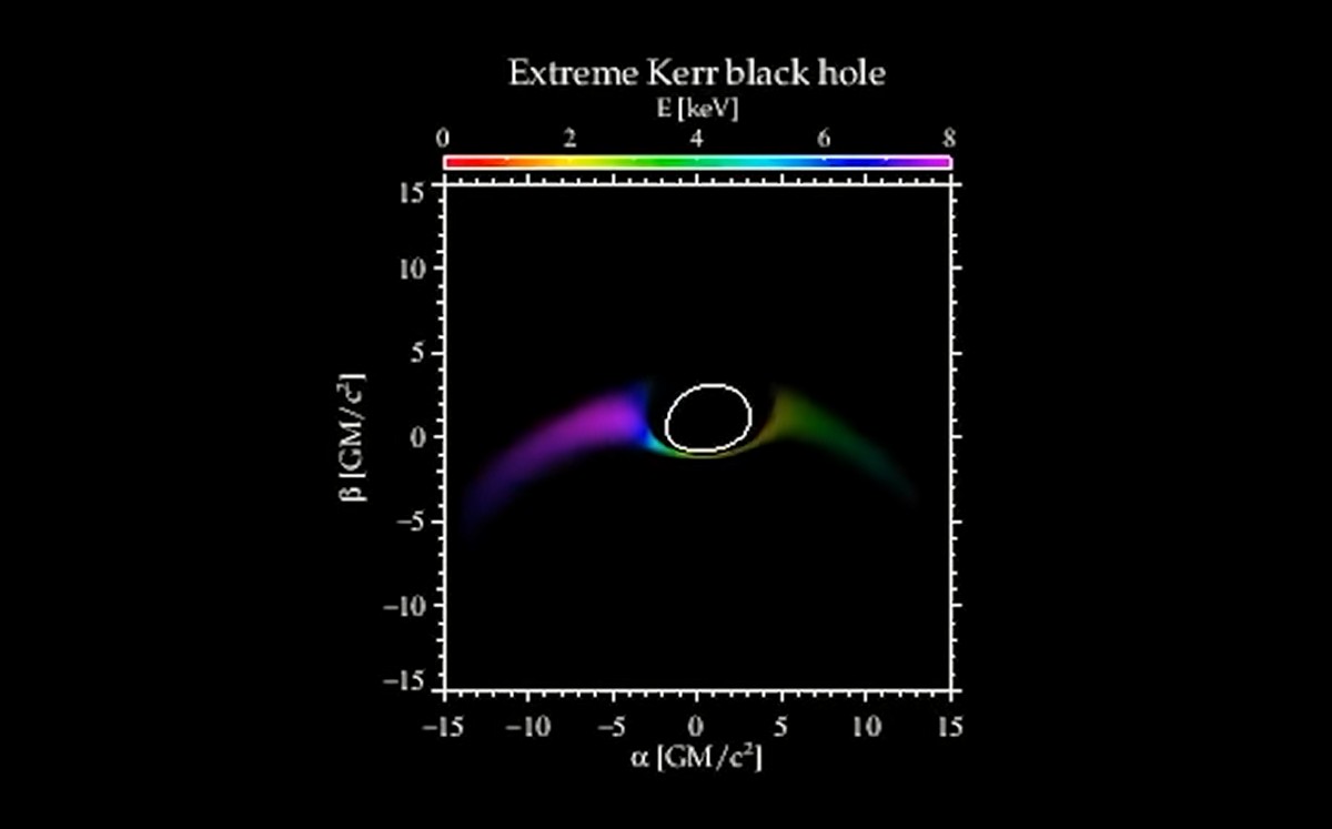 En un estudio que aparece en el Astrophysical Journal, los investigadores del MIT presentan en un video simulaciones de los ecos de luz del disco de acreción alrededor de un agujero negro de máxima rotación ("Kerr").
