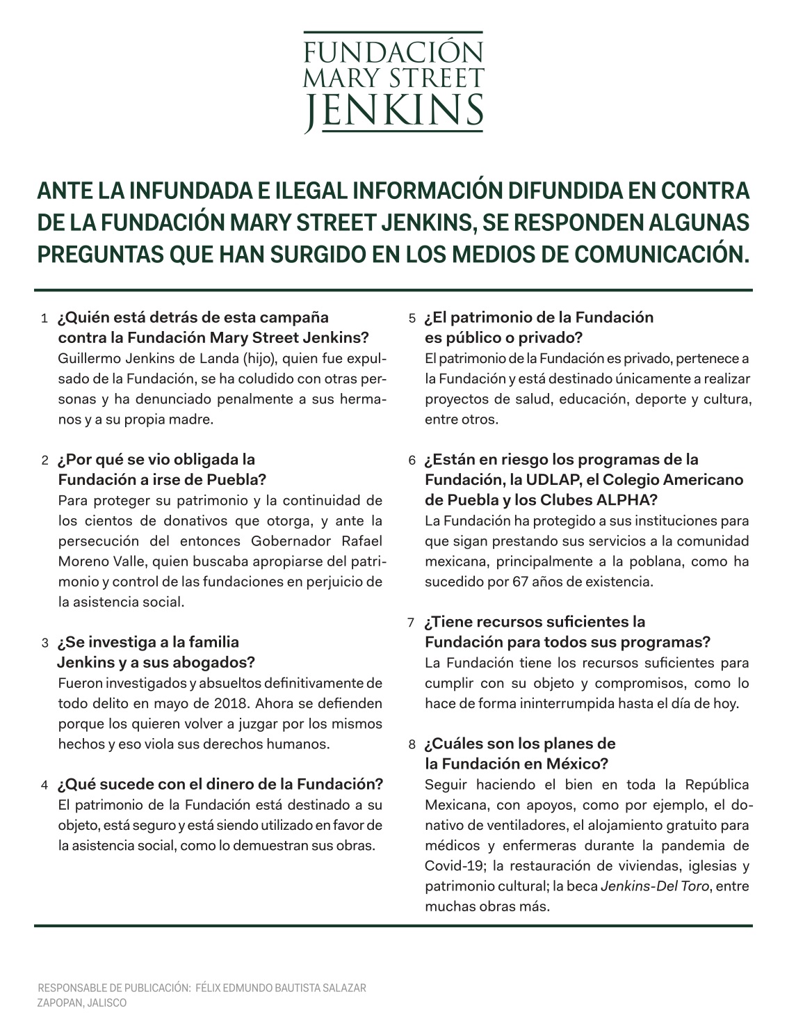 La institución afirma que su patrimonio está asegurado y está destinado exclusivamente a los proyectos altruistas de salud, educación, deporte y cultura, entre otros