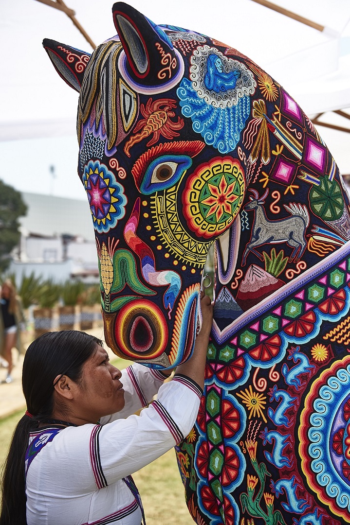 • Asimismo, podrás observar la obra de arte de los artesanos Huicholes de San Andrés Cohamiata, Jalisco. En técnicas de chaquira e hilo, se hicieron unos caballos inspirados en este gran circuito ecuestre. La elaboración de estas piezas tomó más de 20 horas, todo hecho a mano.