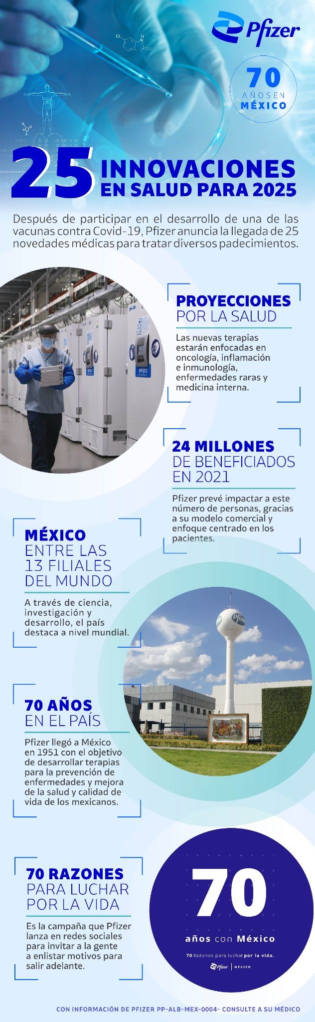 La empresa farmacéutica anunció la llegada al país de 25 innovaciones médicas que permitirán la prevención, tratamiento y cura de enfermedades que aquejan a la población nacional. Constanza Losada, Presidenta y Directora General de Pfizer México junto con Yéssika Moreno, Directora Médica, fueron las responsables de dar el anuncio. “Esto refuerza nuestro compromiso con México y nos coloca como la compañía biofarmacéutica más diversificada en la industria”, señaló Constanza Losada, quien en 2020 se convirtió en la primera mujer en ser CEO de Pfizer México.