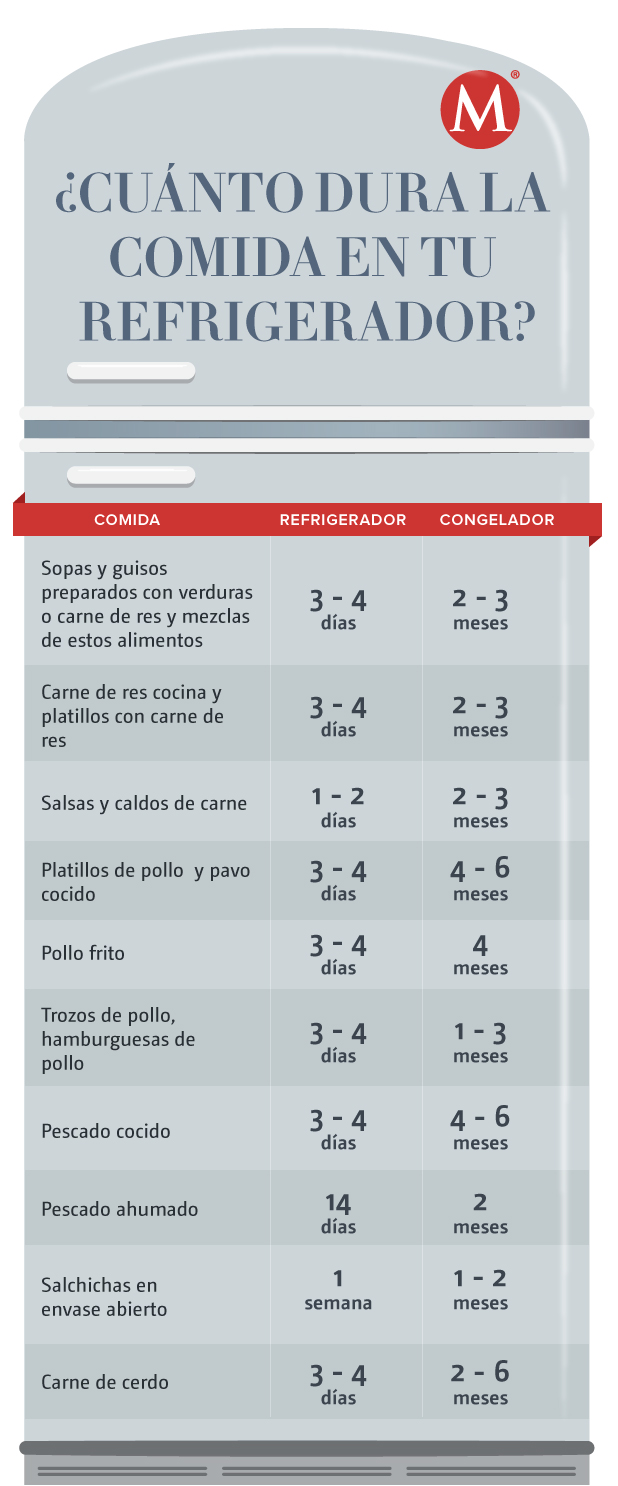 Los alimentos después de algunos días comienzan naturalmente su proceso de descomposición, ante ello, la Food and Drug Aministration (FDA) da las siguientes recomendaciones de tiempo límite para la refrigeración y congelación de nuestros platillos: