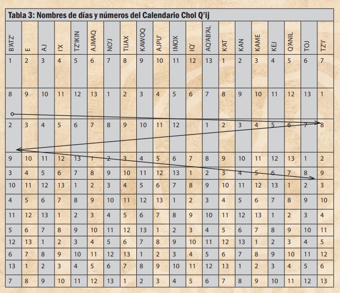 - El Tzolk'in: Era el calendario sagrado y, de acuerdo con el antropólogo de la UNAM, tenía fines adivinatorios. Era un calendario que combina 20 días con 13 números, que suman 260 días. Esto concuerda con los nueve ciclos de la Luna y el periodo de gestación de los humanos.