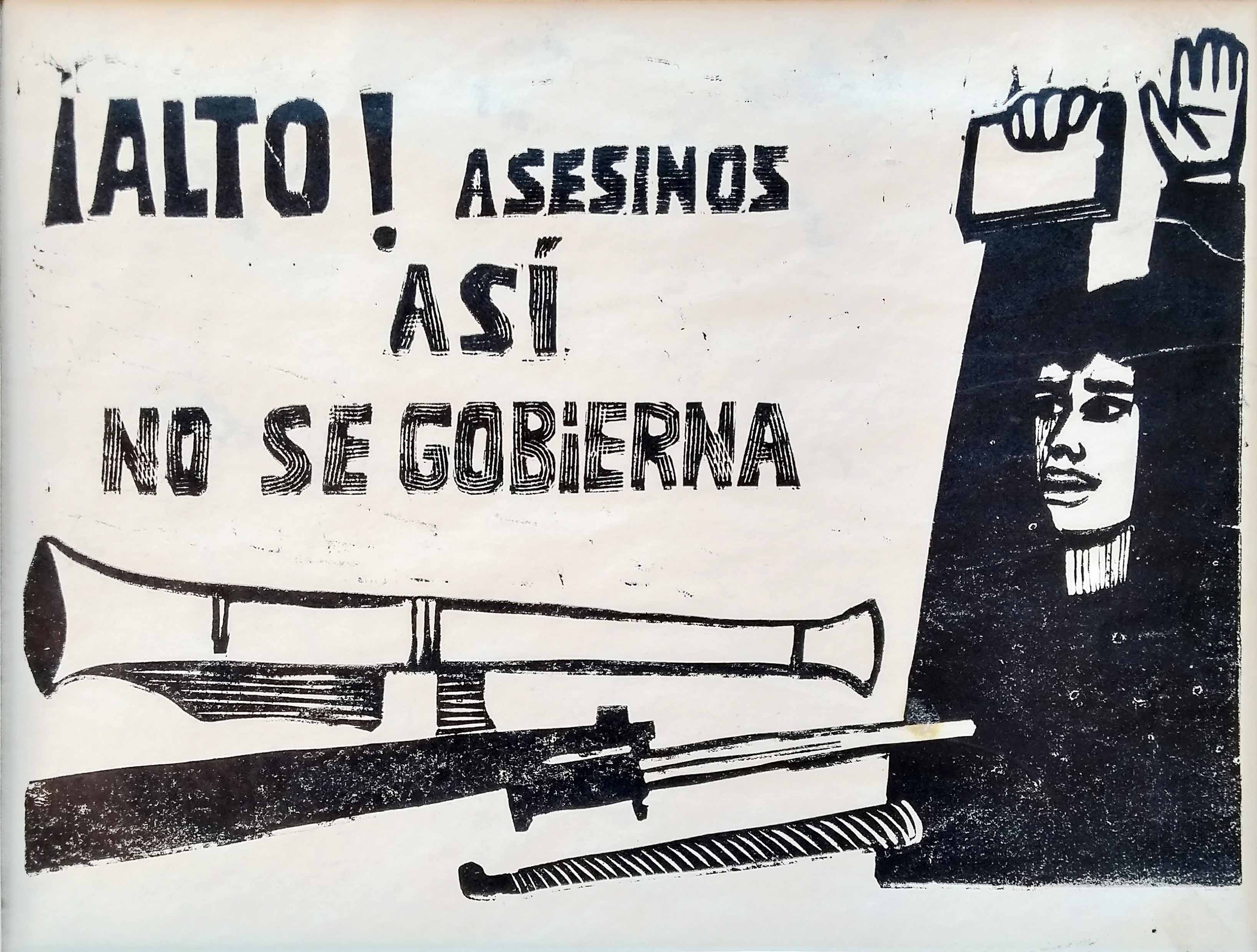 En esa fecha, a raíz del conflicto en la Plaza de la Ciudadela entre una escuela preparatoria y otra vocacional, la policía antimotines intervino con mucha fuerza y todo transcurrió rápidamente. A partir de ese día se dieron numerosas confrontaciones que fueron reprimidas para que todo pudiera estar tranquilo durante la Olimpiada de la Paz. Se formó el Consejo Nacional de Huelga, se integraron comités de lucha por cada escuela participante y se lanzó un pliego petitorio con seis puntos que dieron sentido al movimiento. Durante la lucha se elaboró, sobre todo, propaganda, pues el gobierno tenía a la prensa controlada y ocultaba la información. Ante esta situación el reto era de qué manera informar. De qué manera decir al pueblo y al público lo que estaba ocurriendo. Comenzamos a hacer volantes con imágenes; después se hicieron carteles con alguna figura caricaturesca. Apareció la del gorila como símbolo de la represión. También se plasmaron figuras de soldados en la calle o bayonetas o marros o mazos. Al lanzarse los seis puntos del pliego petitorio, las imágenes que se crearon fueron para difundirlos, principalmente. La participación de alumnos, maestros de San Carlos y activistas de diversas escuelas amplió la producción gráfica durante el movimiento, a grado tal que en las galerías de San Carlos se montó una gran exposición de imágenes, pero fue asaltada poco después por un grupo paramilitar que se llevó la exposición completa. El hueco que dejó esta exposición nos hizo pensar, con el tiempo, que debíamos recuperarla. Toda esta actividad se realizó para restablecer la paz, pero no la olímpica, sino la paz de la democracia.