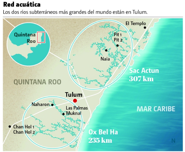 Hace 13 mil años la última era glacial estaba por terminar. Al derretirse los cascos polares, se incrementó el nivel del mar y las costas se fueron inundando. “En Quintana Roo las cuevas se sumergieron. Los lugares a donde entraban para refugiarse quedaron sellados y las futuras generaciones ya no pudieron entrar, tampoco los animales. Los mayas conocieron los cenotes casi con el mismo nivel de agua que nosotros encontramos”.