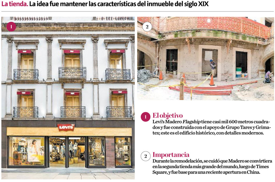 El número 72 de la calle Madero se volvió la primera flagship de Levi’s en México y, lo hizo en grande, uniendo aún más la moda con la arquitectura y yendo al rescate del patrimonio histórico; el inmueble del siglo XIX con tres niveles, de estilo neoclásico al frente e influencia colonial en la parte posterior, es protegido por el Instituto Nacional de Antropología e Historia (INAH) y la Secretaría de Desarrollo Urbano y Vivienda (Seduvi).