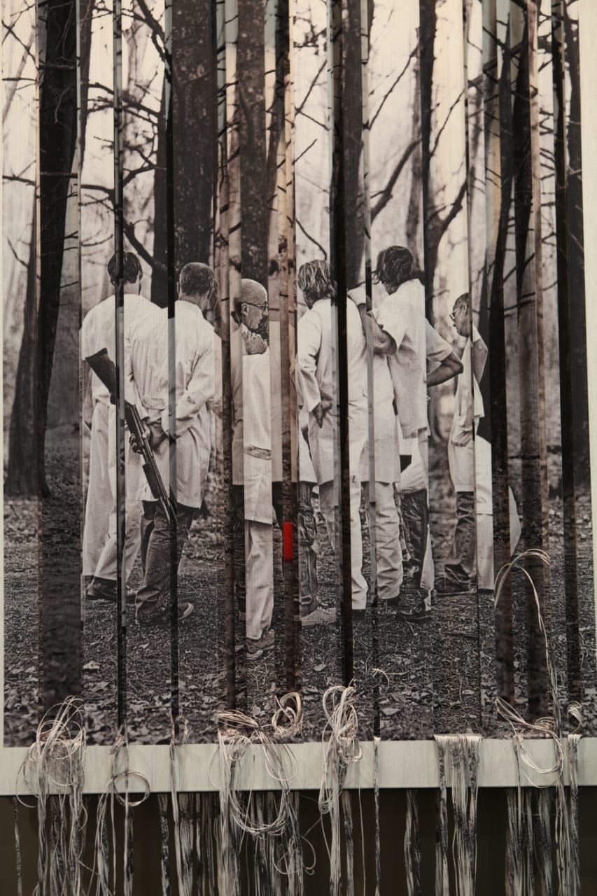 Lo que aparentemente es una imagen común, resulta ser más que eso, una propuesta fotográfica que se puede observar desde distintas perspectivas. Es el trabajo de Pablo Boneu, titulado Al fin lo hallamos, realizada en 2013, fotografía analógica impresa sobre hilos de cáñamo, exhibido por la Galería Terreno Baldío Arte.