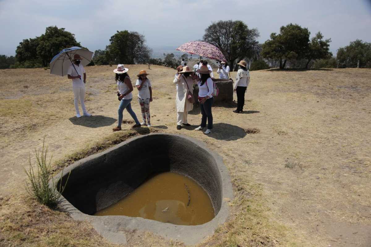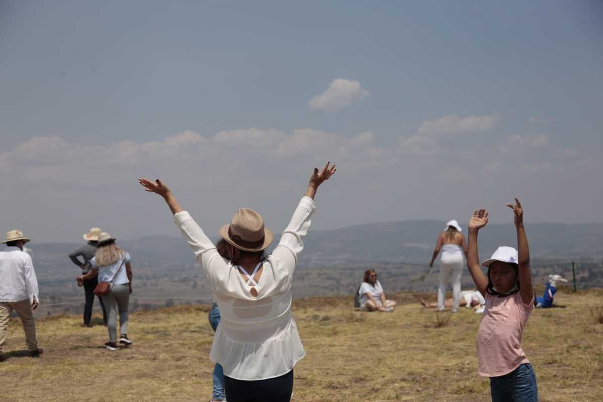 En el Linaje de las Flores, es decir, Xochitécatl, los visitantes subieron a la pirámide de las Flores. En su cima la gente se tomó fotos extendió los brazos al cielo o las manos al frente para recibir esa fuerza de la naturaleza.