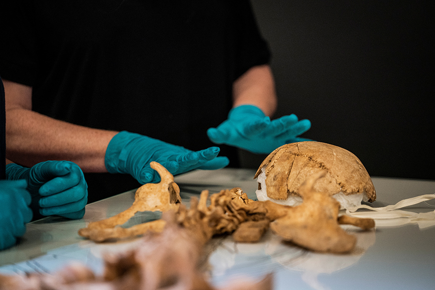 Durante más de dos horas, dos de sus colegas reconstruyeron el esqueleto de un hombre de unos 20 años, a partir de unos 150 huesos prestados por el Museo de Oxfordshire durante tres años.