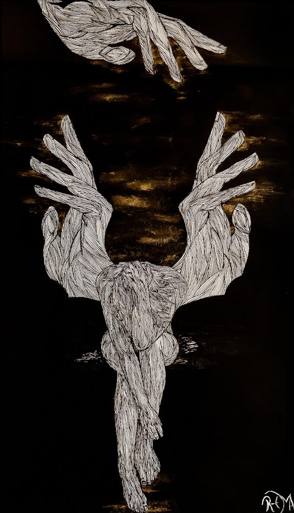 Silencio, obra en sepias que busca resonar en lo que cada espectador lleva oculto, es tan sólo un inicio en el amplio registro de sensibilidad que alcanza Reedma, porque le siguen piezas como Mi ángel, donde una mano celestial cubre a su creación y Sentí tu alma ceñida y húmeda por el dolor, un canto de consuelo y solidaridad, que aunque viene de una imagen femenina no sólo hace eco del sufrimiento de las mujeres, a decir de la autora, quien reconoce la disposición del recinto.