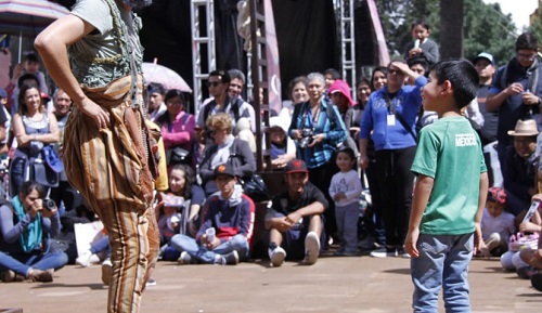 Este gran relato contado por medio del acto circense “Llévame”, de la Compañía Claunódromo, fue representado por el actor Manuel Ariga, quien dice que por medio de la comedia intentan abordar temas sensibles relacionados con la violencia.