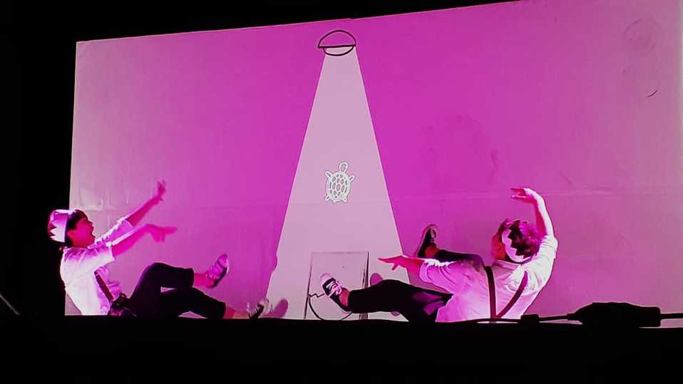 El relato comenzó con peleas para prender la luz y ocupar el espacio en el pizarrón; luego se llegó al nacimiento de una tortuga y un viaje para liberarla en el mar, durante el que aparecieron diversos animales y personajes fantásticos que cobraban vida en los dibujos e interactuaban con el público y los actores.