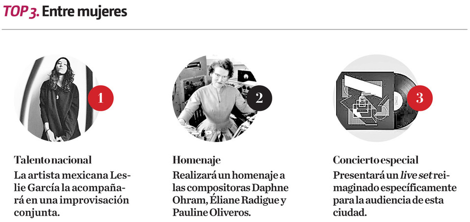 Por otra parte, la artista mexicana Leslie García acompañará a Feshareki en una improvisación conjunta durante una parte del set. Otro de los objetivos de Pioneras electrónicas es establecer un diálogo entre artistas mujeres de la electrónica en nuestros días, dando pie a colaboraciones entre integrantes de distintas generaciones y disciplinas experimentales alrededor de México y el resto del mundo.