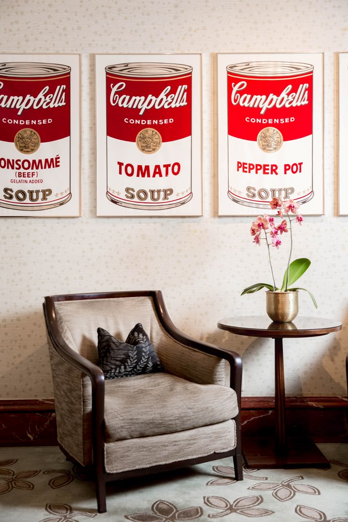 En el vestíbulo se exhiben diez obras de la serie Campbell’s Soup, de Warhol, mientras en el Gotham Lounge hay 10 retratos monumentales del artista dedicados a Mao. De Basquiat se muestra una obra sin título, y de Barbara Kruger, Your Pleasure is Spasmodic and Short Lived. La obra de Keith Haring incluye un cuadro mayúsculo sin título, dos variantes de Subway Drawing y Totem, en tanto que de Francesco Clemente hay un retrato de Andy Warhol.