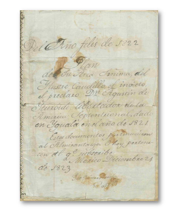 Ejecutado el emperador el 19 de julio de 1824, la viuda Ana María Huarte de Iturbide se exilió a Washington junto con sus hijos, llevando consigo todos los documentos familiares, incluido el original del Plan de Iguala.