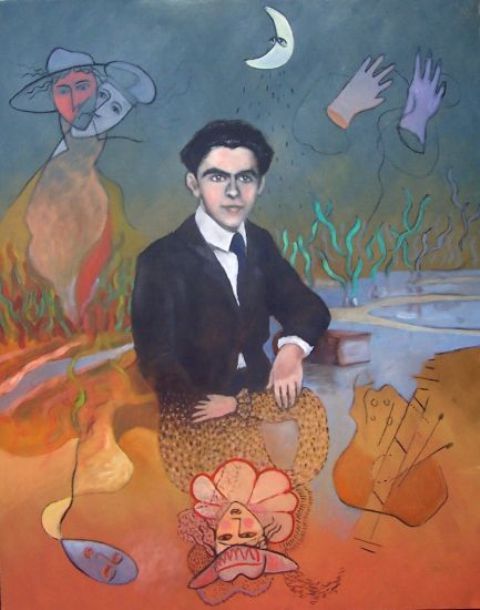 La exhibición incluye grabados en linóleo que fusionan elementos de flora y fauna para crear seres fantásticos, entre ellos hombres búho o con cabellera de flor, o una mujer con cuernos de cimarrón, todos reinterpretados a partir de una selección de versos de García Lorca.