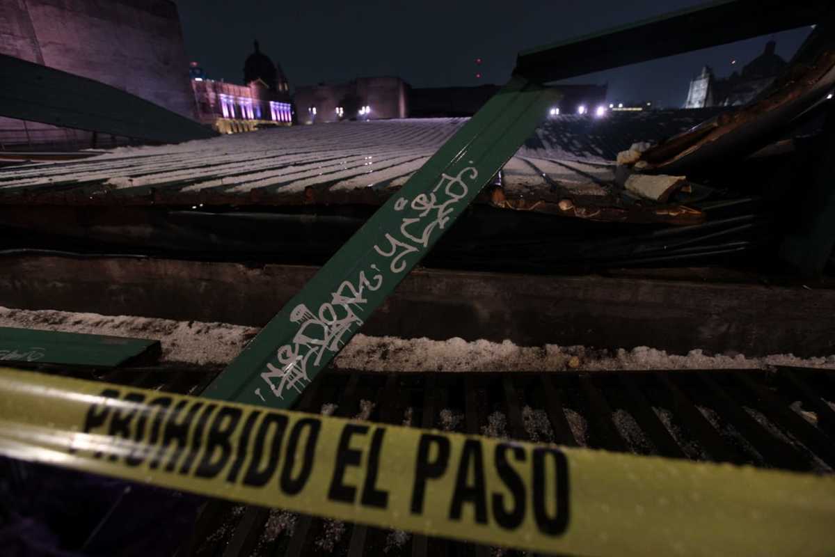 La infraestructura metálica de alrededor de 250 metros cuadrados cayó debido al peso del granizo, por lo que elementos de la Secretaría de Seguridad Ciudadana (SSC) y los bomberos llegaron al lugar para realizar trabajos en la zona.