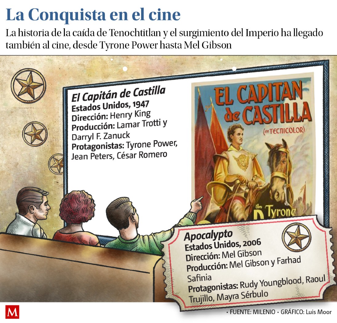 Tyrone Power hace a un noble español que se une a Cortés en la conquista de Tenochtitlan. El problema en el resultado fue, ante todo, ideológico, dice Cowans. Y es que si bien se escribió en Estados Unidos, el guión se enfrentó a dos narrativas irreconciliables pues en ellas corrían ideas distintas de lo que somos como animales políticos. ¿Qué historia vamos a contar?, se preguntaron los ejecutivos de la 20th Century Fox. ¿La de los vencedores o la de los vencidos?
