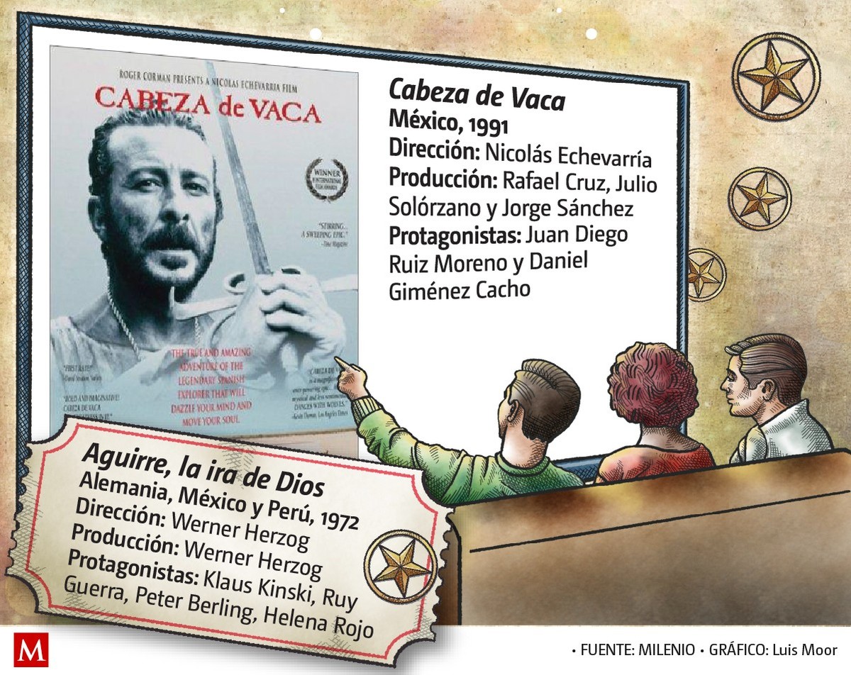 En la periferia de esta batalla hay dos películas que valen la pena: Cabeza de Vaca, de Nicolás Echeverría, consiguió en 1991 dar una idea de lo que significó el encuentro entre cosmogonías tan distintas y, claro, la única obra de arte en este recuento: Aguirre, la ira de Dios, de Werner Herzog. En esta película, el enloquecido Lope transmite con eficiencia lo que significaron para toda una generación las hazañas de Cortés, ese semidiós que emuló las hazañas de Alejandro y que al mismo tiempo fue el pobre diablo que destruyó la esplendorosa Tenochtitlan cuando era totalmente innecesario.