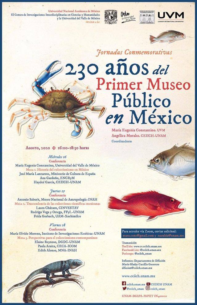 Por tal motivo, la Dra. María Eugenia Constantino Ortiz de la UVM y Dra. Angélica Morales, de CEIICH-UNAM, organizaron las Jornadas Conmemorativas 230 años del Primer Museo Público en México, que se llevarán a cabo de forma virtual y en las que participarán reconocidos investigadores de la UNAM, la UAM, el CINVESTAV, la UVM, el INAH y el Ministerio de Cultura de España.
