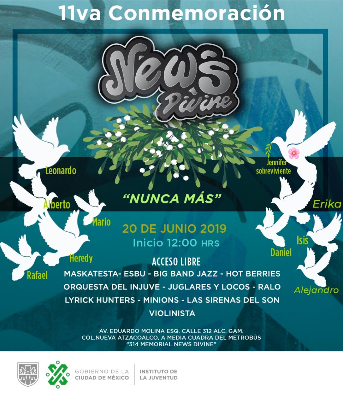 Para honrar la memoria de los nueve jóvenes fallecidos el 20 de junio de 2008, al interior de la discoteca denominada New’s Divine, el Instituto de la Juventud (Injuve) de la Ciudad de México alistan una serie de eventos culturales y musicales.