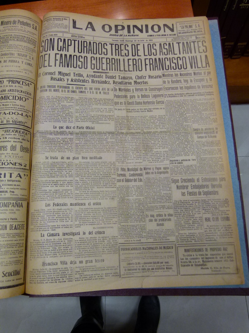 El asesinato Francisco Villa, general revolucionario conocido como El Centauro del Norte, le dio la vuelta al mundo y La Opinión, el cuarto periódico en México y el primero en el norte de la República, se encargó de dar la noticia.