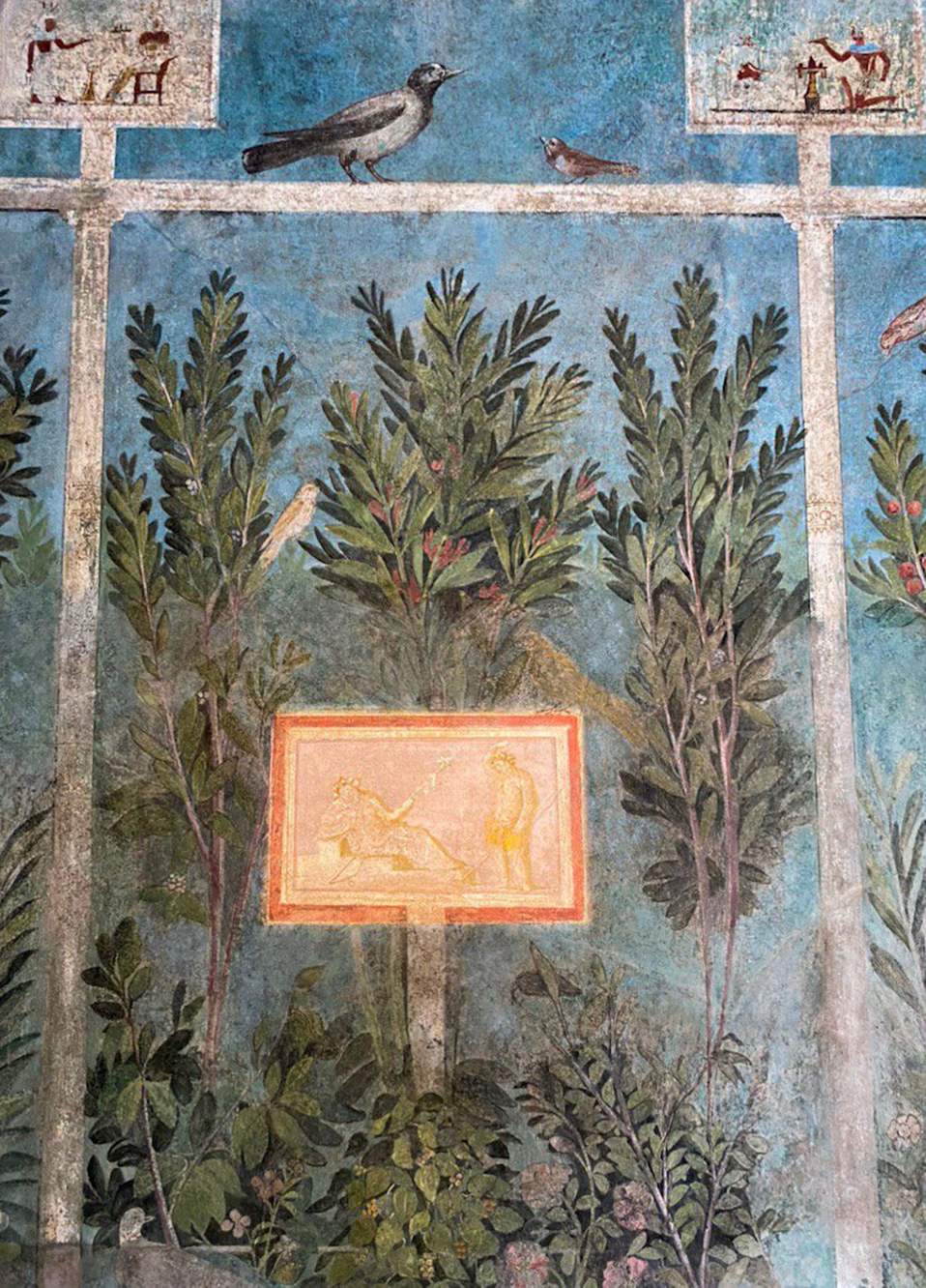 Las otras dos "domus" abiertas al público pertenecían a las clases altas, la "casa de los Huertos", con magníficos frescos de árboles frutales y pájaros y la "casa de la Nave Europa", con un boceto en forma de graffiti de una grande embarcación.
