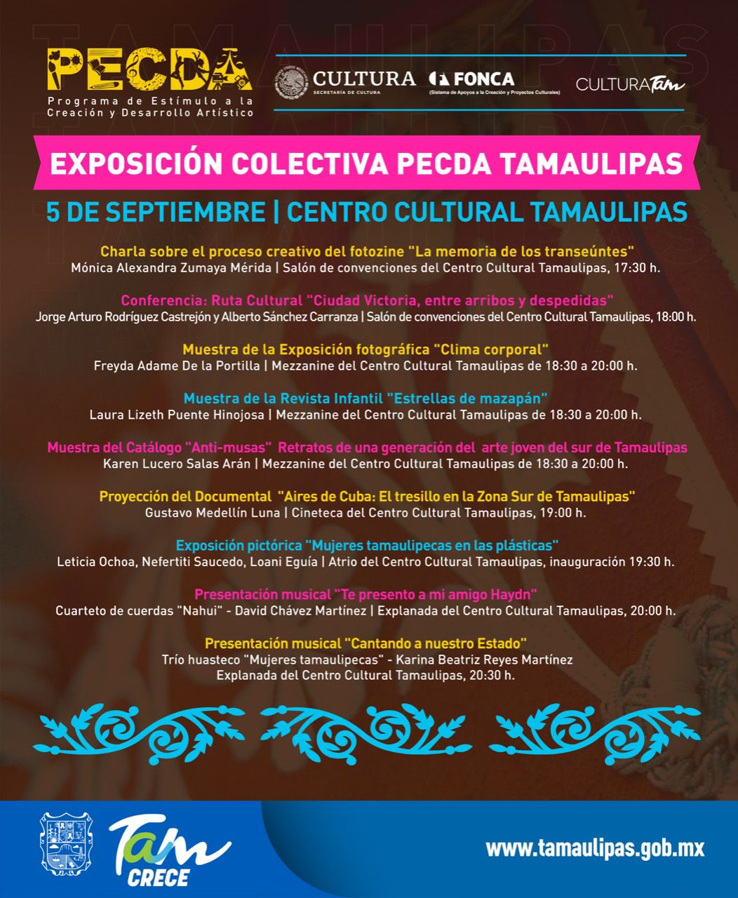 Este domingo 5 de septiembre el Centro Cultural de Tamaulipas abrirá sus puertas al público para presentar una exposición colectiva de los creadores beneficiados a través del programa Pecda.