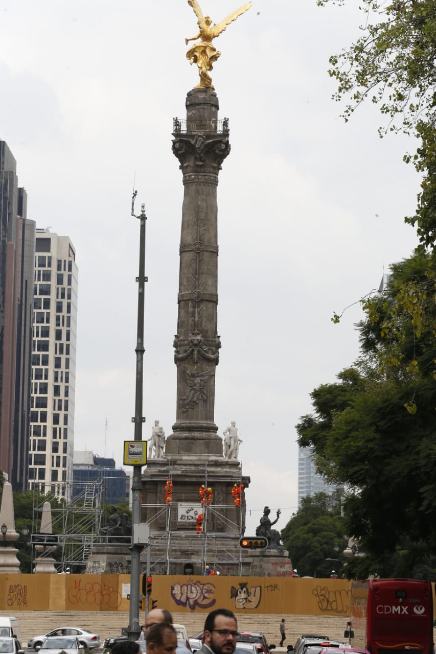 A dos años de los sismos de septiembre que afectaron al Ángel de la Independencia, inició la colocación del andamio para la rehabilitación estructural de la a Columna.