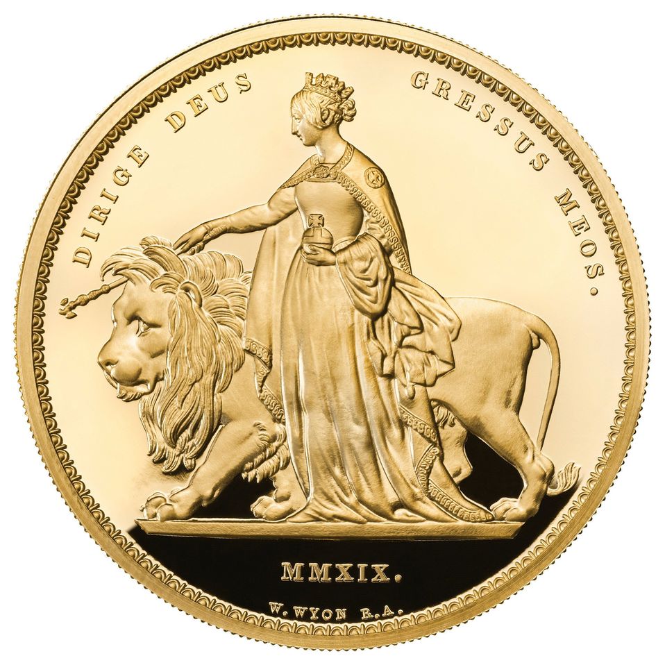 La primera pieza de la serie reproduce un grabado creado por William Wyon en 1839, titulado Una and the Lion, originalmente parte de una moneda de oro con la efigie de la reina Victoria.
