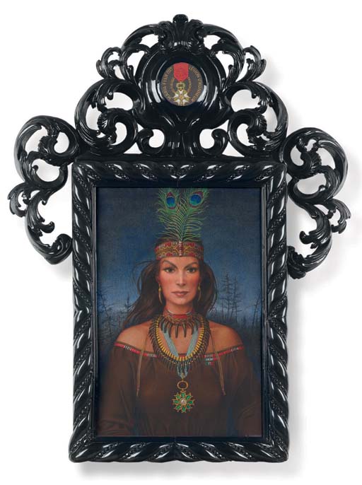 'María Félix en allégorie des Amériques' en el que se reconoce a la actriz ataviada con un penacho, fechado en 1997, cinco años antes de la muerte de la mexicana, un acrílico de 64 por 43 centímetros, tenía un precio estimado de entre 500 y 700 mil pesos y al final incremento su valor en un 89 por ciento.