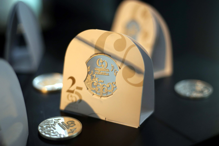 Con un diseño original de Eduardo Benítez y acuñada en una onza de plata ley .999, la moneda conmemorativa del 25 aniversario de la Camerata de Coahuila se mantiene a la venta con la finalidad primordial de proveer a la orquesta de herramientas que permitan la recaudación de fondos para solventar algunas actividades.