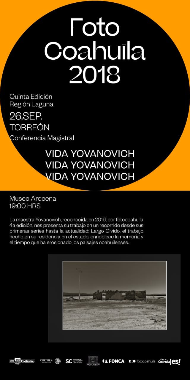 El próximo miércoles en punto de las 19:00 horas la fotógrafa Vida Yovanovich dictará una conferencia magistral en el Museo Arocena, presentando su trabajo en un recorrido desde las primeras series hasta la actualidad.