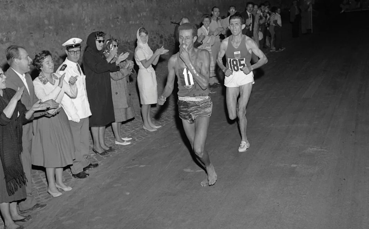 Este es el caso del atleta nacido en Etiopía Abebe Bikila, quien dejó grabado su nombre con letras de oro en los libros de historia de la justa veraniega con su medalla dorada conquistada en el certamen de Roma 1960.
