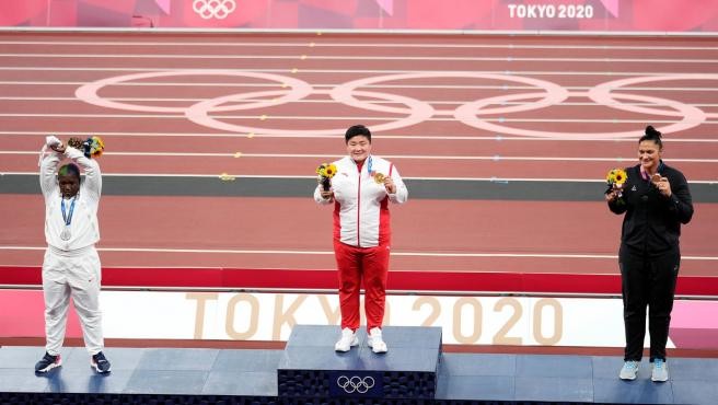 Junto a ella subieron al podio la campeona, la china Gong Lijiao, y la medallista de bronce, la neozelandesa Valerie Adams.