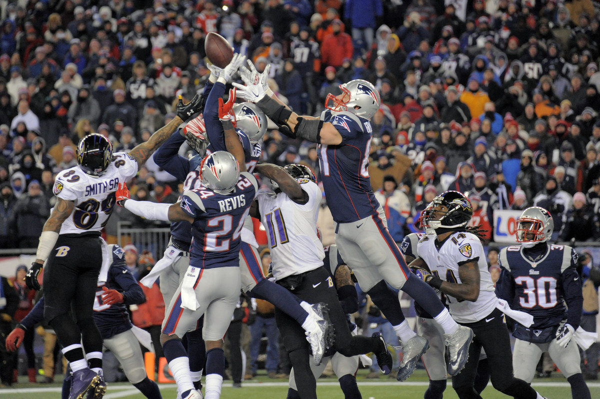 La primera de ellas, fue en la ronda de Wildcard del 2009, en donde Baltimore se impuso por un contundente 33-14; en aquel entonces, fue la primera derrota de postemporada para New England jugando en casa, dentro de la era Brady-Belichick. Además, fue la primera derrota de los Patriots como locales en playoff desde 1970.