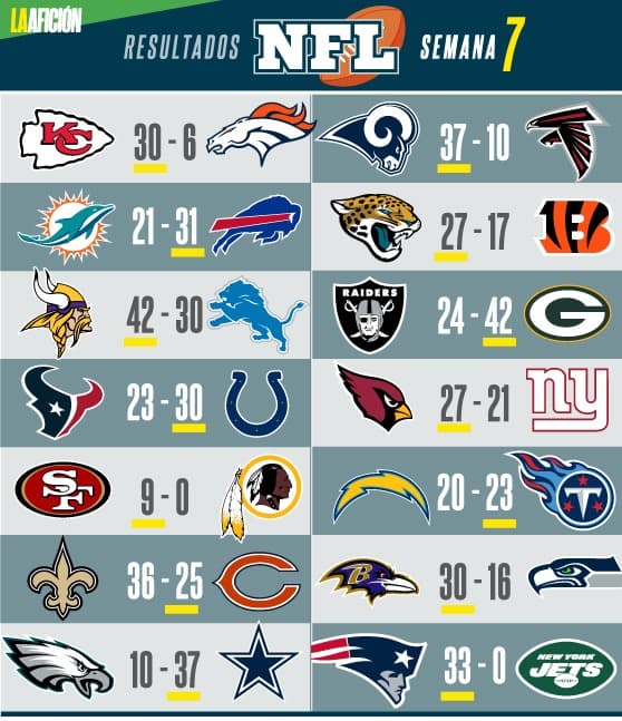 La mitad de la NFL 100 está cerca y la semana 7 inició con la aplastante victoria 30-6 de los Kansa City Chiefs sobre los Denver Broncos en el Thursday Night.