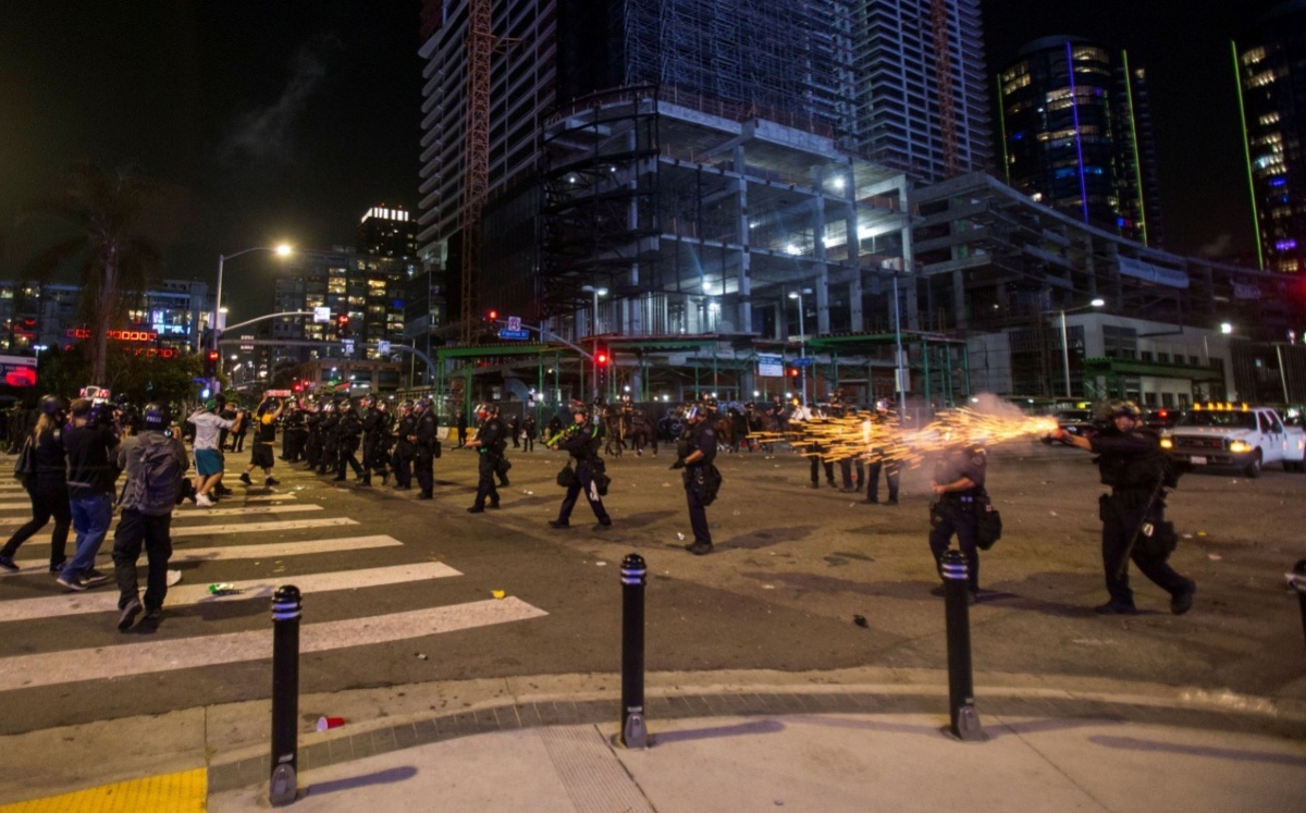 "Individuos revoltosos mezclados dentro de la multitud comenzaron a lanzar botellas de vidrio, piedras y otros (tipos de) proyectiles a los oficiales", señaló el texto.