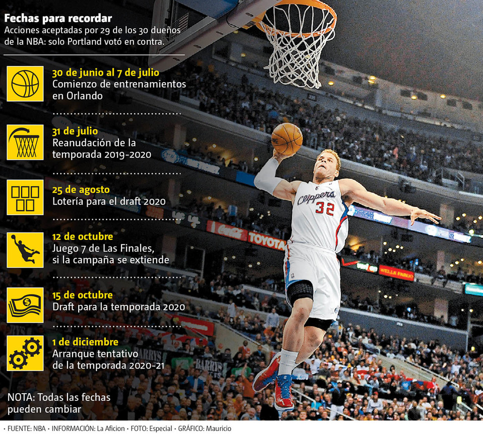 La NBA ha llegado a un acuerdo para echar a andar su plan de regreso. Los detalles ya se habían anticipado, pero ahora son oficiales: habrá juegos previos para terminar la temporada entre 22 equipos, de los cuales, ocho disputarán los últimos dos lugares para completar los 16 que jugarán los playoffs este año.