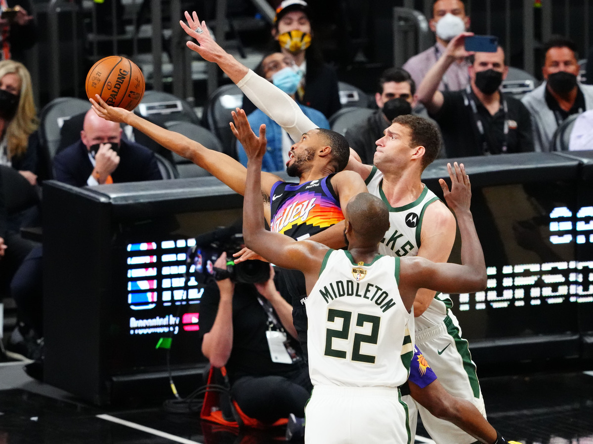 A pesar de que Milwaukee se esforzaba por cerrar el juego, las canastas desde la media distancia se les negaban y los Suns no hacían más que atacar y salir de territorio rival con puntos (78-62). Los últimos minutos del tercer periodo fueron cruciales, al punto de que la diferencia ya era de dos dígitos, gracias al buen trabajo de Ayton y Paul, quien tuvo que jugar con un dolor en la mano izquierda; un triple de Middleton ayudó a frenar el sangrado, pero los Suns ya se encaminaban a la victoria (76-92).